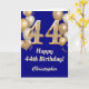 Cartão 44 Birthday Marinho Azul e Dourado Balões Confetti