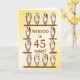 Cartão de aniversário de 45 anos. Corujas curiosas virando a cabeça para olhar para você e perguntando "Quem tem aniversário hoje?". Um cartão de aniversário engraçado para quem gosta de corujas. As corujas mostradas são corujas de celeiro.