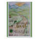 Ilustração de um campo com flores e da cordilheira com o próximo sol no fundo.