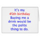 " É meu 45th aniversário, comprando me que uma bebida seria a coisa polida a fazer." O design cómico para essas pessoas de 45 anos que amam fazer pessoas rir e se uma bebida livre sai o negócio seja assim ele.