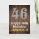 Este design de carta de saudação de aniversário inspirado no ocidente e inspirado no país apresenta um grande número de inspiração rústica "46", a mensagem "Feliz 46.º Aniversário", um nome personalizado e um fundo de padrão inspirado no estilo de fibra falsa/imitação de madeira. O dentro tem uma mensagem de saudação de aniversário personalizada, ou talvez possa ser apagado e deixado vazio se uma mensagem for escrita manualmente. Um cartão de saudação de aniversário personalizado como este pode ser uma maneira divertida de enviar uma mensagem de saudação de aniversário a alguém que está celebrando seu quarenta e sexto aniversário. [~Z0000469]