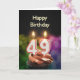 Um bolo de aniversário com velas. As velas são compostas pelo número 49, para um aniversário de 49 anos. Um cartão de aniversário adequado para todos.