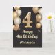Cartão 4.º Aniversário, Balões Dourados e Negros Confetti