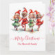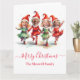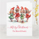 Cartão de elfos de Natal de dança bonita com 4 fotos. Personalize com fotos e nome de família.