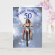 Uma linda moça andando de moto pelas estrelas no céu. Um cartão de aniversário muito diferente para o homem que gosta de uma moto!