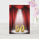 Dourado 50º aniversário no holofote com cortinas vermelhas.
