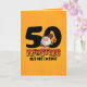 Engraçado design do aniversário de 50 anos com um caricatura sorridente segurando um clube e uma tocha. O texto diz 50 PREHISTÓRICOS, MAS NÃO EXTINTOS. Fundo em apuros. Personalize-o com seu próprio texto personalizado. PinkInkArt original!