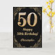 Cartão 50º aniversário - Quadro negro e Dourado com brilh