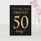 Cartão 50º efeito Dourado em Black, Friend Birthday