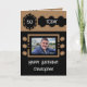 50º cartão de aniversário. 50 hoje / cartão de saudação para ele. Qualquer idade / personalizar para o bem. Adicione uma foto, nome e mensagem. Castanho e preto.