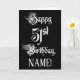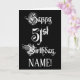 A frente deste elaborado e profundo design de cartão de saudação com tema de aniversário apresenta a mensagem "Feliz 51ruas Aniversário," em texto com estilo de script de ornamentado, em um fundo preto colorido. O dentro tem uma mensagem de saudação de aniversário personalizada, ou talvez pudesse ser apagado e deixado vazio se uma mensagem fosse escrita manualmente. Um cartão de cumprimentos de aniversário personalizado como este pode ser uma maneira respeitável de entregar alguns desejos de aniversário a alguém que comemora seus cinquenta e um anos. [~Z0000554]