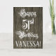 A frente deste design de cartão de saudação temático de aniversário elegante e rico apresenta a mensagem "Feliz 51ruas Aniversário," no texto elaborado do estilo do roteiro. A frente também apresenta um nome de destinatário editável, e uma madeira falsa parece inspirada em um padrão de fundo. O dentro tem uma mensagem de saudação de aniversário personalizada, ou talvez possa ser apagado e deixado vazio se uma mensagem for escrita manualmente. Um cartão de cumprimentos de aniversário personalizável como este pode ser uma maneira respeitável de enviar alguns desejos de aniversário a alguém que comemora seus cinquenta e um anos. [~Z0000556]