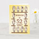 52º cartão de aniversário. Corujas curiosas virando a cabeça para olhar para você e perguntando "Quem tem aniversário hoje?". Um cartão de aniversário engraçado para quem gosta de corujas. As corujas mostradas são corujas de celeiro.