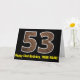 A frente deste design de cartão de saudação temático de aniversário divertido e rústico apresenta um grande número "53" com um padrão de aparência inspirado em madeira de imitação, junto com a mensagem "Feliz 53º Aniversário", e um nome personalizável. O dentro apresenta uma mensagem de saudação de aniversário personalizada, ou talvez possa ser apagado e deixado o vazio se uma mensagem for escrita manualmente. Um cartão de aniversário personalizado como este pode ser uma maneira divertida de enviar desejos de aniversário a alguém que comemora seus cinquenta e três anos. [~Z0000431]