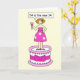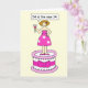 Uma moça de desenho animado parada num gigante bolo de aniversário, segurando um coquetel e dizendo "54 são os novos 34".