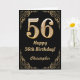 Cartão 56.º aniversário - Quadro negro e Dourado com bril