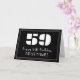Este design clássico de cartão de aniversário inspirado na aparência dos anos 1920/1930 apresenta um grande número "59" com visual inspirado no art déco, a mensagem "Feliz Aniversário de 59 anos", um nome personalizado e um padrão de borda composto por linhas finas na frente. O fundo da frente é colorido de preto. O interior tem uma mensagem de aniversário editável, ou talvez possa ser limpo e deixado em branco se uma mensagem for escrita à mão. Um cartão de aniversário personalizado como este pode ser enviado em celebração do aniversário de cinquenta e nove anos de alguém. [~Z0000486]