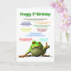 Um cartão de 5. Muitas piadas sapos ruins. Um sapo legal coloca o polegar para cima para mostrar que gosta das piadas. Dê risada e um cartão de aniversário legal.