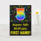 A frente deste design de cartões de saudação divertidos, vibrantes e coloridos com tema de aniversário apresenta um grande número "5" com um padrão inspirado no gradiente do espectro arco-íris, juntamente com a mensagem "Feliz 5 Aniversário", e um nome de destinatário editável. A frente também apresenta notas de música coloridas e padrões de símbolos. O dentro apresenta uma mensagem de saudação de aniversário personalizada, ou talvez possa ser apagado e deixado vazio se uma mensagem for escrita manualmente. Um cartão de aniversário como este pode ser uma maneira divertida de enviar desejos de aniversário a um músico, cantor, compositor ou a outra pessoa que comemora seu quinto aniversário. [~Z0000420]