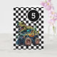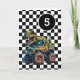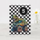 Um cartão de 5 de aniversário de monstro de dinossauros para rapazes. Possui um fundo de verificação preto-e-branco na frente com um lugar onde você pode personalizar facilmente a idade, se necessário. Um dinossauro Tyrannosaurus rex em cima de um caminhão monstro deliciará todos os fãs de dinossauros e caminhões monstros.