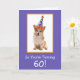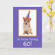 Cartão bonito para um aniversário de um marco com um córgi feliz em um chapéu colorido. Personalize o número para sua própria celebração especial.