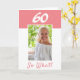 Um cartão de saudação personalizado de 60º aniversário para uma mulher que comemora o 60º aniversário. Ela vem com uma citação engraçada e motivacional 60 Então o que! e é perfeita para uma pessoa com senso de humor. A placa está em cores rosa e branca. Insira sua foto na modelo. Você também pode mudar o número do ano.
