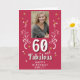 60 e Fabuloso Cartão com fotos de folhagem Magenta 60. 60 e um texto fabuloso em um roteiro branco com um nome e uma folhagem branca num fundo magenta vívido. Personalize com sua foto, seu nome e a idade. Adicione o dentro de texto à placa ou apague-a.