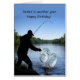 A funny birthday card for a fisherman on his 60th birthday. Celebrate his birthday with a catch he’ll never forget! This funny fisherman birthday card features a fisherman proudly landing a fish shaped like his age. The perfect humorous way to mark another year and raise a smile.