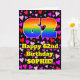 A frente desta alegre e colorida design de saudação de aniversário apresenta um grande número "62" com um padrão inspirado no gradiente do espectro arco-íris, juntamente com a mensagem "Feliz 62º Aniversário", e um nome personalizado. O fundo da frente apresenta um padrão de formas cardíacas cor-de-rosa, roxa e vermelha de vários tamanhos. O dentro tem uma mensagem de saudação de aniversário personalizada, ou talvez pudesse ser apagado e deixado vazio se uma mensagem fosse escrita manualmente. Um cartão de saudação de aniversário divertido e personalizado como este pode ser uma maneira divertida de enviar uma mensagem de saudação de aniversário a alguém que está celebrando seu aniversário de sessenta e segundos. [~Z0000551]