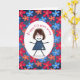 Cartão 65.º aniversário, Stick Girl e Daisies em Denim