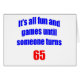 É todo o divertimento e jogos até que alguém gire 65. 65th design cómico do aniversário para as pessoas de 65 anos que têm um sentido de humor sobre sua idade. Faz um grande 65th presente de aniversário.