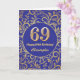 Cartão 69º Aniversário Marinho Azul e Dourado Padrão Flor