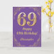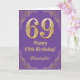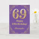 Cartão 69.º aniversário, Roxo e Dourado quadro de brilho