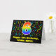 Este design de cartão de saudação animado, vibrante e entusiasmante do aniversário apresenta um grande número "6" com um padrão inspirado no gradiente do espectro arco-íris, juntamente com a mensagem "Feliz 6 Aniversário", e um nome de destinatário personalizável. A frente também apresenta notas de música coloridas e padrões de símbolos. O dentro apresenta uma mensagem de saudação de aniversário personalizada, ou talvez possa ser apagado e deixado o vazio se uma mensagem for escrita manualmente. Um cartão de saudação de aniversário personalizável como este pode ser uma maneira divertida de entregar uma mensagem de saudação de aniversário a alguém que está celebrando seu sexto aniversário. [~Z0000426]