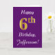 Cartão 6 Roxo, Faux Dourado Aniversário + Nome Personaliz