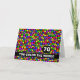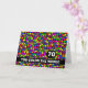 Cartões de aniversários 70 com mundos brilhantes e coloridos no cobrir. Personalize o número e o texto do cobrir como quiser antes de comprar. As formas do globo têm cores brilhantes e audíveis em preto. Arte, imagem e verso © Shoaff Ballanger Studios, 2021.