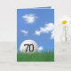 Bola de golfe branca em grama verde com fundo no céu de verão para 70 de aniversário.