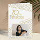 70 e Fabulosa Placa de Aniversário de 70 de Foto Glitter Dourada. Cartão de aniversário moderno com tipografia de moda e pontos falsos de ouro. O design tem uma foto e um nome personalizados. Você pode alterar ou apagar o dentro de texto. Faça um cartão de aniversário de 70 personalizado para ela.
