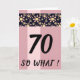 70 Que Cartão de Aniversário Floral Rosa Engraçado para Ela. O cartão é cor-de-rosa com uma faixa do padrão das flores rosa e amarela sobre fundo preto. Engraçado e inspirador cita 70, então o que é perfeito para uma pessoa com senso de humor. Altere o número de idade e personalize o dentro de mensagem e nomes ou exclua-o.