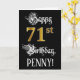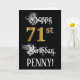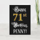A frente deste rico e elaborado design de cartão de saudação com tema de aniversário apresenta a mensagem "Feliz 71ruas Aniversário", e um nome de destinatário personalizável. Parte da mensagem está em um texto lento no estilo de script. O grande número "71ruas" apresenta um padrão de aparência falsa/imitado de inspiração dourada. O fundo é preto colorido. O dentro tem uma mensagem de saudação de aniversário personalizada, ou talvez possa ser apagado e deixado vazio se uma mensagem for escrita manualmente. Um cartão de cumprimentos de aniversário luxuoso e personalizado como este pode ser uma maneira respeitável de entregar alguns desejos de aniversário a alguém que está celebrando seu setenta e um anos. [~Z0000559]