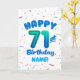 Celebrate their 71st birthday with a bright, cheerful, and personalizable birthday card! This custom name birthday card features a bold number seventy-one balloon and colorful confetti.