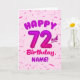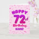 Cartão 72nd Birthday, Balloon Number, Customizable Name