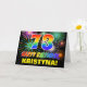 A frente deste design de cartão de saudação de aniversário divertido, colorido e alegre apresenta um grande número "73" e a mensagem "FELIZ BIRTHDAY", ambos tendo um gradiente de padrão inspirado no espectro do arco-íris, juntamente com um nome ousado de destinatário personalizado amarelo. A frente também tem um padrão de fundo multicolorido inspirado pela aparência de fogos de artifício comemorativos em explosão. O dentro apresenta uma mensagem de saudação de aniversário personalizada, ou talvez possa ser apagado e deixado vazio se uma mensagem for escrita manualmente. Um cartão de aniversário colorido personalizado como este pode ser uma maneira divertida de celebrar o setenta e terceiro aniversário de alguém. [~Z0000471]