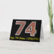 A frente deste design de cartões de saudação com tema de aniversário apresenta um grande número "74" com um padrão de muro castanho avermelhado, juntamente com a mensagem "Feliz 74.º Aniversário", e um nome personalizável. O dentro apresenta uma mensagem de saudação de aniversário personalizada, ou talvez possa ser apagado e deixado o vazio se uma mensagem for escrita manualmente. Um cartão de aniversário como este pode ser uma maneira divertida de enviar desejos de aniversário a alguém que comemora seus setenta e quatro anos. [~Z0000399]