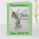 Celebre um aniversário de 75 anos com um cartão de cor d'água de um grande beija-flor de um grupo de amigos ou família. As encantadoras flores de pássaro e jardim foram desenhadas com cores suaves de verde, creme e rosa. O na moda e o cartão da moda são o amor cheio, alegria e parabéns felizes!