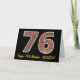 A frente deste design de cartões de saudação tematizado de aniversário apresenta um grande número "76" com um padrão de muro castanho avermelhado, juntamente com a mensagem "Feliz 76.º aniversário", e um nome personalizado. O dentro apresenta uma mensagem de saudação de aniversário personalizada, ou talvez possa ser apagado e deixado o vazio se uma mensagem for escrita manualmente. Um cartão de aniversário personalizado como este pode ser uma maneira divertida de enviar desejos de aniversário a alguém que comemora seus setenta e seis anos. [~Z0000399]