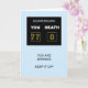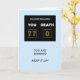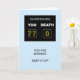 Um cartão de aniversário engraçado para dar um aniversário. Um placar mostra a idade como a pontuação vencedora contra a morte. As palavras "Você está vencendo, continue!" completam a cena.