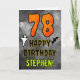 A frente deste design de cartões de saudação de aniversário temático e assustador do Hallowe'en apresenta um grande número "78". Também apresenta a mensagem "FELIZ ANIVERSÁRIO", além de um nome editável. Há também representações de um morcego e de um fantasma na frente. O dentro apresenta uma mensagem de saudação de aniversário personalizável, ou talvez possa ser apagado e deixado o vazio se uma mensagem for escrita manualmente. Um cartão de aniversário personalizado como este pode ser uma maneira divertida de enviar desejos de aniversário a alguém que comemora seus setenta e oito anos e que também foi nascer no dia 31 de outubro (Halloween). [~Z0000547]