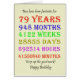 79º cartão de aniversário contando anos, dias, meses, horas e minutos. Um cartão para dar pausa para pensar! Foram tidos em conta anos saltos!
