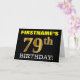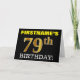 Este design de cartão de saudação de aniversário apresenta uma mensagem como "FIRSTNAME'S 79th BIRTHDAY!", com o "79º" a ter uma aparência falsa/de cor dourada. O nome do destinatário na frente pode ser personalizado e o fundo frontal é preto colorido. Também apresenta uma mensagem de saudação de aniversário personalizável no dentro. Um cartão de cumprimentos de aniversário como este talvez pudesse ser dado a alguém em comemoração dos seus setenta e nono anos. [~Z0000183]